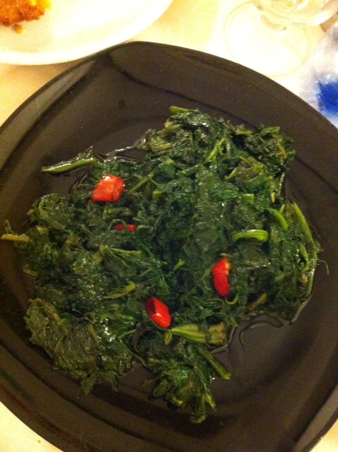 付け合せの ホウレンソウの炒め物も ジャンボサイズ...
