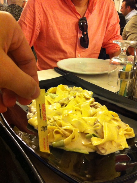 カルボナーラ (爪楊枝と比べるとどれだけ大きいかが良くわかります。)