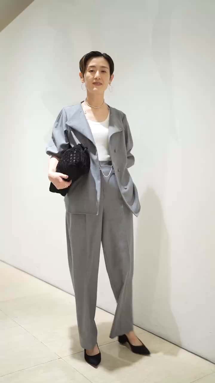 しなやかで軽やかな素材のテーパードパンツです。ウール100%の上質な風合いと温もりを備え、秋冬のワードローブに最適な一本です。ややゆとりのあるテーパードシルエットに、フロントはダーツとクリースラインですっきりと仕上げ、ウエスト後ろにはゴムギャザーを取り入れて快適な履き心地になっています。フロントポケットは、コインポケットを片玉縁に、ポケット口のラインはエッジを柔らかく仕上げることで、カジュアルさを残しつつも上品な印象になっています。さらに、後ろ裾にさりげなく入ったスリットが、控えめな肌見せと抜け感を演出します。同素材のブラウスとのセットアップスタイルもおすすめです。