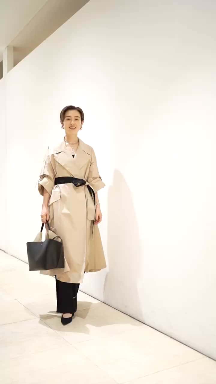柔らかなコットンとポリエステルをブレンドした素材を使用した、軽やかな着心地のトレンチコート。さらりとした肌触りで、一日中ストレスなく快適に着用いただけます。大きめの襟がアクセントとなり、シンプルながらも洗練されたディテールが際立つ一着。フロントはエレガントな印象を与えるダブルブレスト仕様で、付属のリボンベルトを結ぶことでウエストラインにメリハリをプラスできます。さらにフラップポケットがデザイン性を添え、背上部のヨークがケープ風に施されており後ろ姿にも華やかさがあります。