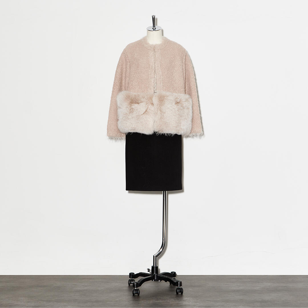 凛とした女性らしさの中に、静かな温もりを感じさせます。ファー切り替えブークレ ニットジャケット / Cruciani ¥170,500(inc.tax)