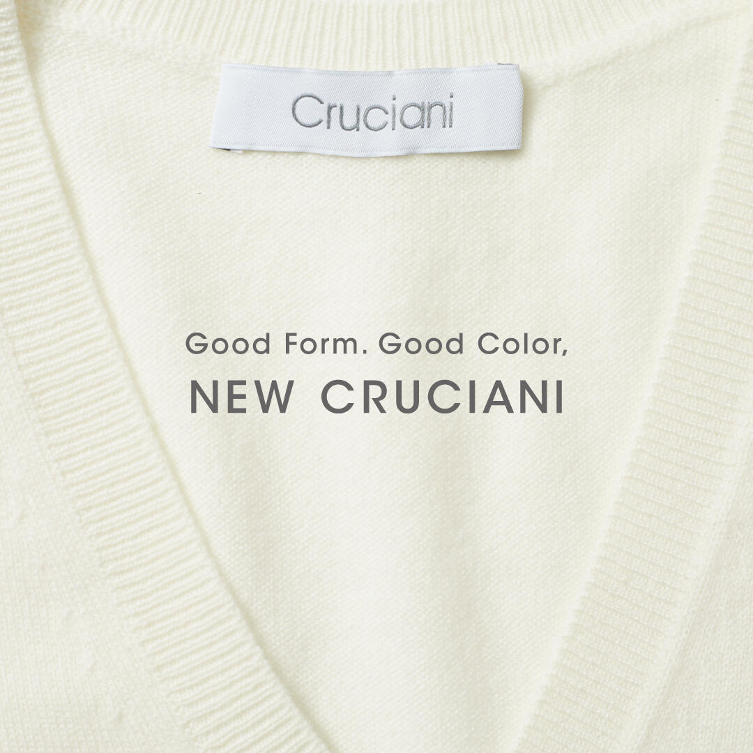 インナーにはクルチアーニのハイゲージニットを添え、質感の重なりが生む奥行きが魅力。